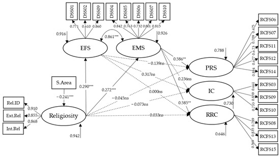 3.2. Impact of Religiosity on the Experience of Coercive Victimization in the Couple, Considering the Mediating Role of the Sexual Double Standard