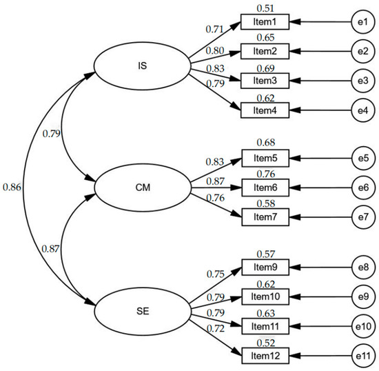 The best-fit model of TSES-SF (Model 4). Note. IS: “Efficacy for instructional strategies”; CM: “Efficacy for classroom management”; SE: “Efficacy for student engagement”.