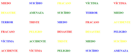 The third sheet included the words classified as negative (or activating), also printed in color (Figure 3).