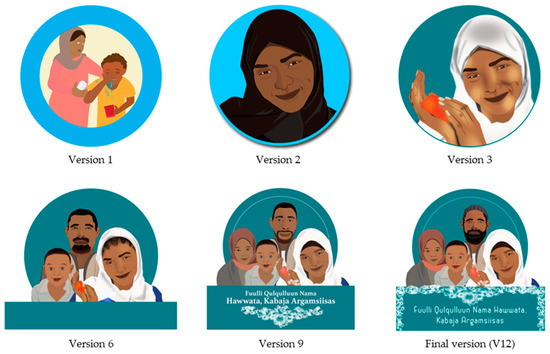 The intervention was named the Faces of Dignity intervention, with the tagline “A clean face is attractive, it is also dignifying”, exemplified by the image of a dignified family, which was refined through multiple rounds of community feedback (Figure 1). This image visually represented the intervention’s central narrative and served as its logo, being easily recognisable, memorable, and aspirational for the audience, reminding them about the target behaviour promoted by the intervention. The logo was displayed on the intervention banner and materials.