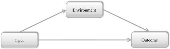 In the field of higher education, Astin’s (1993) Input–Environment–Outcome (I-E-O) model (Figure 1) stands as a conceptual framework for the systematic evaluation of academic programs and institutional effectiveness. Input refers to students’ initial personal background and learning motivation when they are enrolled in higher education, while environment means students’ experiences in their education, and outcome involves students’ satisfaction and improvements in skills and competences (Astin, 1993). The applications of this model have not only drawn researchers’ attention to students’ outcomes but have also helped them understand students’ learning motivation and the impact of the learning experiences arising from their interactions with environmental factors (Astin, 1993).