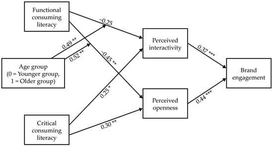 Song C, Kim E. The Influence of New Media Literacy on Brand Engagement: Mediating Effects of Perceived Interactivity and Openness and the Moderating Effect of Age. Behavioral Sciences. 2025; 15(4):458. https://doi.org/10.3390/bs15040458
