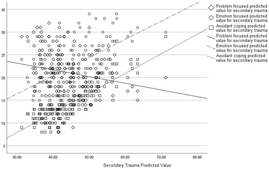 Similarly, an increase in secondary trauma scores was associated with greater emotion-focussed and avoidant coping and less problem-focussed coping (see Figure 4).