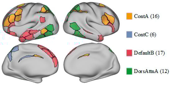 Figure 4. Spatial maps of the ContA, ContC, DefaultB, and DorsAttnA networks.
