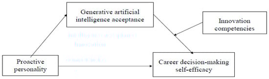 With the increasing adoption of generative artificial intelligence, individuals possessing robust innovation competencies are better positioned to leverage these technologies for enhanced performance and decision-making. Individuals exhibiting high innovation competencies are more likely to recognize the potential of generative artificial intelligence technologies and integrate them effectively, subsequently enhancing their self-efficacy. Conversely, individuals with less developed innovation competencies may encounter difficulties in recognizing the value of generative artificial intelligence technologies, potentially leading to diminished self-efficacy and suboptimal career decision outcomes. Notwithstanding the significance of this relationship, the extant literature has not comprehensively examined how innovation competencies modulate the impact of a proactive personality on self-efficacy in career-related decision-making via generative artificial intelligence acceptance. Consequently, based on these theoretical and logical arguments, we propose the following hypotheses: