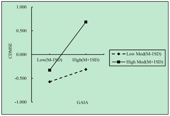 Test of the moderation effect, revealing how IC influences the association connecting GAIA and CDMSE.