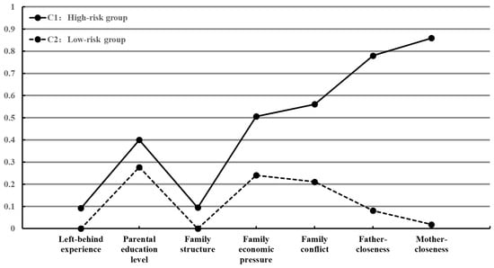 - Adolescents can be classified into two latent classes of cumulative family risk: high-risk (30.78%) and low-risk (69.22%). Adolescents in the high-risk group had significantly higher self-injury scores than those in the low-risk group.