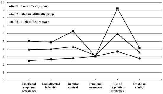 - Adolescents exhibit three latent profiles of emotion regulation difficulties: low-difficulty (56.02%), medium-difficulty (32.60%), and high-difficulty (11.38%). Adolescents in the high-difficulty group had the highest self-injury scores, followed by those in the medium-difficulty group and the low-difficulty group.