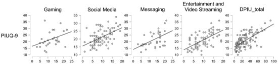 | Variable | PIUQ-9 | Gaming | Social Media | Messaging | Entertainment and Video Streaming | |
