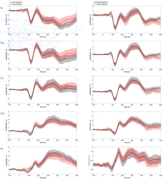 3.4.1. PIU Questionnaires and ERP Components in Go Condition
