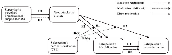 SPOS promotes the salesperson’s felt obligation through a group-inclusive climate and ultimately stimulates the salesperson’s career initiative.