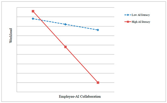 The moderating effect of AI literacy on the relationship between employee–AI collaboration and workload.