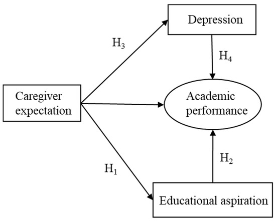 Considering H3 and H4 as a whole, it is hypothesized that students’ depression would mediate the association between their caregiver expectation and academic performance.
