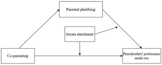 Thus, preschoolers’ problematic media use represents an emerging developmental risk in the digital era, with its adverse effects well-documented. Against this background, the influencing factors and mechanism should be further examined, so as to provide evidence for scientific prevention and intervention. While some studies have incorporated multiple family-level variables or parental dyads, relatively few have systematically applied a family systems perspective to understand how interconnected parenting subsystems influence children’s digital behaviors (e.g., Cost et al., 2020; Niu et al., 2020). In particular, the co-parenting subsystem—defined as the collaborative process by which caregivers coordinate and support each other in child-rearing—remains underexplored in the context of media regulation (Kopko, 2007). Parental inconsistency in media rules (e.g., conflicting permissions from each parent) may contribute to increased child confusion and dysregulation, yet this issue has received limited empirical attention (Kildare & Middlemiss, 2017; McDaniel & Radesky, 2018). Moreover, many traditional frameworks have yet to account for emerging family-level risks in the digital age, such as parental phubbing—a behavior that not only models excessive media use but may also initiate a cycle of attention deprivation and compensatory digital engagement in young children (Radesky et al., 2018). Crucially, preschoolers respond differently to parental behaviors. Secure attachment may serve as a key protective factor, potentially moderating family influences through enhanced emotion regulation and stress coping capacities (Bowlby, 1969). Grounded in family systems theory and attachment theory (Bowen, 1993; Bowlby, 1969, 1979), we propose a dual-level (family–individual) model to investigate how co-parenting influences preschoolers’ problematic media use, with parental phubbing as a mediator and secure attachment moderating both the direct effect of co-parenting and the indirect effect of phubbing by buffering negative impacts.