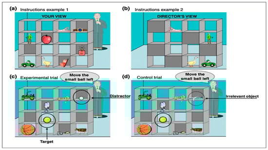 - Apperly, I. A., Carroll, D. J., Samson, D., Humphreys, G. W., Qureshi, A., & Moffitt, G. (2010). Why are there limits on theory of mind use? Evidence from adults’ ability to follow instructions from an ignorant speaker. Quarterly Journal of Experimental Psychology, 63(6), 1201–1217. [Google Scholar] [CrossRef]