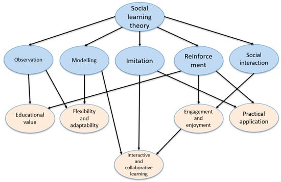 Social Learning Theory (SLT) (Bandura, 1977) posits that learning occurs within a social context, emphasising the role of observation, modelling, and imitation. Previous studies have demonstrated the effectiveness of observational learning in education, suggesting that interactive, game-based environments significantly enhance students’ retention and understanding of complex concepts (Gee, 2003; Whitton, 2012). SLT (Bandura, 1977) is based on the idea of observational learning (modelling), where individuals observe and imitate the behaviours of influential or admired others, known as “models”. These can be parents, teachers, peers, or media figures. SLT emphasises four key mediational processes:
