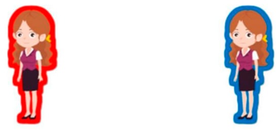 Figure 1. Teacher images (left, “Teacher Red,” and right, “Teacher Blue”). This figure was created using materials from Animiz Information Technology Co., Ltd, Guangzhou, China. (www.animiz.cn).