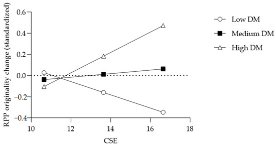 Conditional effect of CSE on RPP originality change moderated by DM.