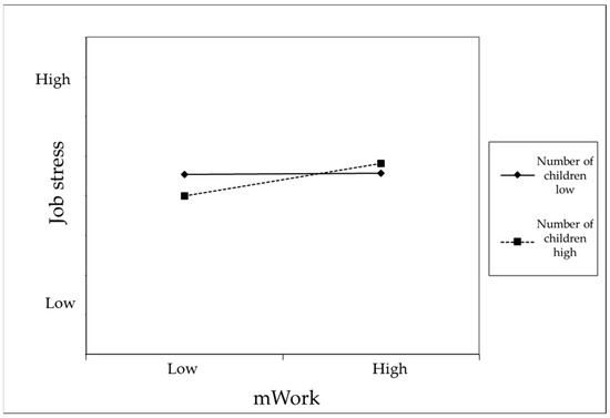 The number of children moderates the relationship between mWork and job stress, such that the positive association between mWork and job stress is amplified as the number of children increases.