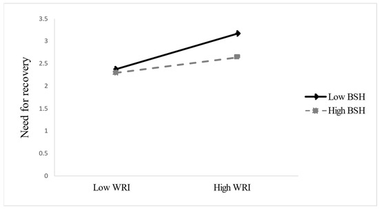BSH moderates the relationship between WRI and NR. BSH = boundary strength at home; WRI = work-related irritation; NR = need for recovery.