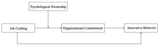 The mediating effect of organizational commitment on the relationship between job crafting and innovative behavior is moderated by psychological ownership.