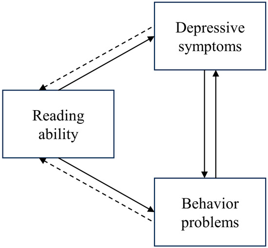 The co-occurrence of depressive symptoms and behavior problems in typically developing children is well-documented and increases the chance of adverse outcomes (Caserini et al., 2023; Lau et al., 2023). Research demonstrates that behavior problems can lead to peer rejection and social isolation, resulting in depression (Gooren et al., 2011). A cohort study of Chinese school-age typically developing children found both externalizing and internalizing behavior problems as predictors of depressive symptoms (Leung et al., 2018), aligning with findings from the ALSPAC cohort which links early-onset conduct problems to later depression (Kretschmer et al., 2014). Notably, irritability, a component of externalizing behavior problems, is associated with increased depressive symptoms (Eisenberg et al., 2009), a trend also seen in children with ADHD who face higher rates of depressive symptoms (Joseph et al., 2019). Furthermore, genetics have been shown to account for the progression from early externalizing to later internalizing disorders like depression, according to Wertz et al. (2015). Based on these findings, one hypothesis to be tested is that internalizing and externalizing behavior problems significantly contribute to the development of depressive symptoms in Chinese school-age children. At the same time, previous studies have revealed diverse trajectories between depressive symptoms and behavior problems among school-age children. Historically known as “masked depression”, children with depression frequently display comorbid behavior problems like aggression, hyperactivity, and somatic complaints, which differ from typical adult depressive symptoms (Cytryn & McKNEW, 1972). Additionally, irritability induced by depression can intensify these behavior problems (Wolff & Ollendick, 2006). Longitudinal research (e.g., Ritakallio et al., 2008) has shown that increased depressive symptoms can predict future behavior problems, hinting at a reciprocal relationship. Therefore, another hypothesis to be examined is that depressive symptoms positively influence internalizing and externalizing behavior problems, particularly in Chinese children with dyslexia. Despite the literature surrounding the mutual influence of depressive symptoms and behavior problems (Caserini et al., 2023; Lau et al., 2023), there remains a lack of evidence specifically on their bidirectional effects in dyslexic children. Hence, this research assumes the potential bidirectional relationship between depressive symptoms and internalizing/externalizing behavior problems in Chinese school-age children with dyslexia.