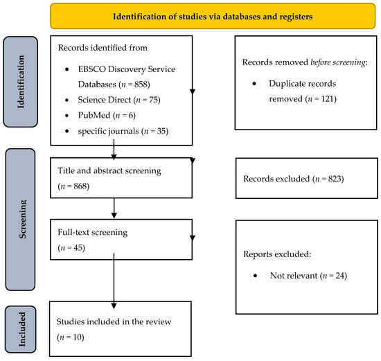 - Moher, D., Shamseer, L., Clarke, M., Ghersi, D., Liberati, A., Petticrew, M., Shekelle, P., Stewart, L. A., & PRISMA-P Group. (2015). Preferred reporting items for systematic review and meta-analysis protocols (PRISMA-P) 2015 statement. Systematic Reviews, 4(1), 1. [Google Scholar] [CrossRef]