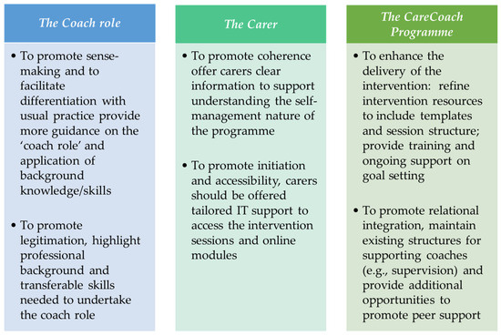 Our findings emphasise the importance of coaches’ skills and background in operationalising CareCoach. We found that some coaches draw on other therapeutic skills, including motivational interviewing and validation when delivering the intervention. Therefore, to ensure fidelity of the intervention whilst maintaining diversity of coaches, it will be important to take time to clarify flexibility for coaches to deploy previous skills when delivering the sessions and to provide additional training where needed for those without previous therapeutic training and experience.