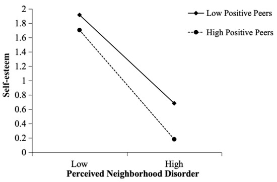 Moderating effect of positive peers on the relationship between perceived neighborhood disorder and self-esteem.