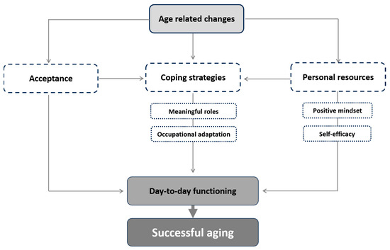 Our study’s results indicate that older adults’ responses to the changes that come with age may enhance their participation in meaningful activities despite the challenges they face. We suggest that the three responses to aging decline, acceptance, personal resources, and coping strategies, might promote day-to-day functioning. Participants with a positive attitude and a sense of competence who accept their aging decline more easily will use coping strategies and therefore be more likely to engage in day-to-day activities, leading to successful aging.