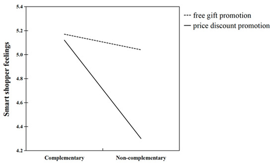 More critically, these main effects were qualified by a significant interaction between bundle complementarity and promotion framing (F(1, 338)= 5.05, p = 0.025, ηp2 = 0.015), indicating that the effect of bundle complementarity on smart shopper feelings was contingent upon the type of promotion framing used. This interaction suggests that the negative impact of non- complementarity on smart shopper feelings was not uniform across the different promotional framings but varied significantly based on how the promotional value was presented to participants.