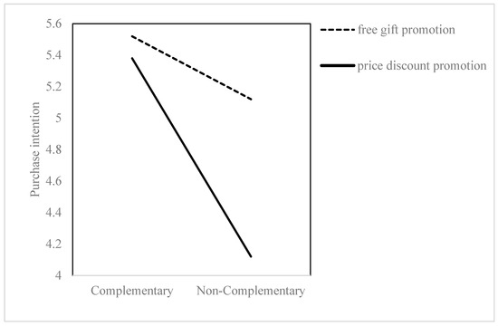 An independent samples t-test was conducted to examine differences in purchase intention for the bundle based on bundle complementarity. The results revealed a significant effect of bundle complementarity on purchase intention (t = 4.485, p < 0.001). Specifically, participants in the complementary condition (N = 170, M = 5.44, SD = 1.52) reported a significantly higher purchase intention compared to those in the non-complementary condition (N = 172, M = 4.65, SD = 1.75; t = 4.485, p < 0.001). These results suggest that the lack of complementarity in bundled products decreases consumers’ purchase intention, supporting Hypothesis 1.