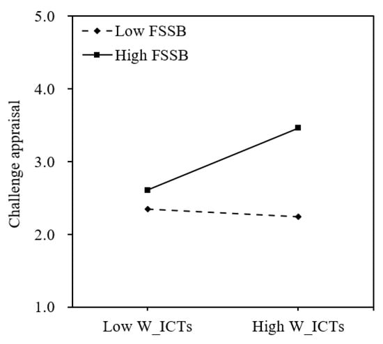 The moderating effect of FSSB on the relationship between W_ICTs and challenge appraisal.