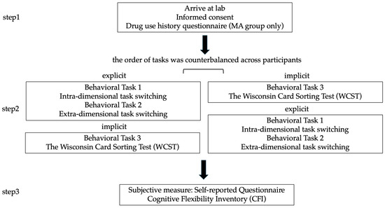 To provide a multidimensional assessment of cognitive flexibility, this study employed a combined methodological approach incorporating both objective and subjective measures. Upon arrival at the laboratory, participants received a detailed explanation of the study and provided written informed consent. Those in the methamphetamine-dependent group should complete a Drug Use History Questionnaire to verify substance use details.