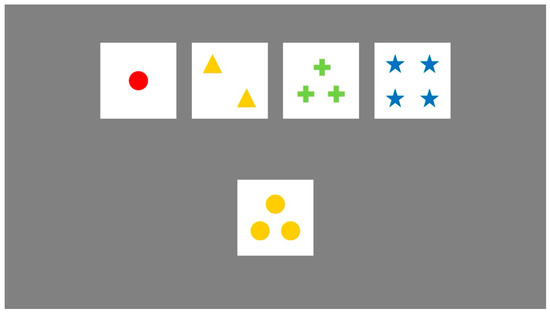 As shown in Figure 4, participants were required to match a target card—randomly drawn from a deck of 128 unique cards—with one of four fixed reference cards. Each card varied along three dimensions: color (e.g., red, green, yellow, blue), shape (e.g., circle, triangle, star, cross), and number of items (1–4). However, participants were not informed which dimension governed the current sorting rule. After each selection, participants received feedback indicating whether the match was correct or incorrect. Based on this trial-by-trial feedback, they were expected to infer the underlying sorting rule and adjust their strategy accordingly. Once a participant achieved 10 consecutive correct responses, the sorting rule changed without warning, requiring them to detect the shift and flexibly adapt to the new rule. This process continued until all six rule shifts were completed or the entire deck was exhausted (Faustino et al., 2021; Feldstein et al., 1999).