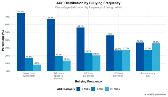 Table 1 presents the analytical sample; 69.0% of children had experienced no ACEs, 18.8% had experienced one ACE, and 12.3% had experienced two or more ACEs. This distribution indicates that approximately one in three children had experienced at least one adverse childhood experience.