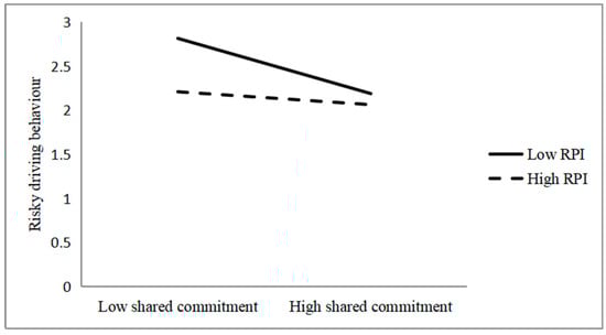 Interaction between shared commitment and RPI in predicting risky driving behaviour.