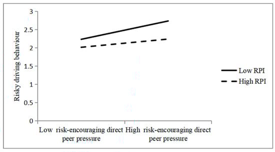 Interaction between risk-encouraging direct peer pressure and RPI in predicting risky driving behaviour.