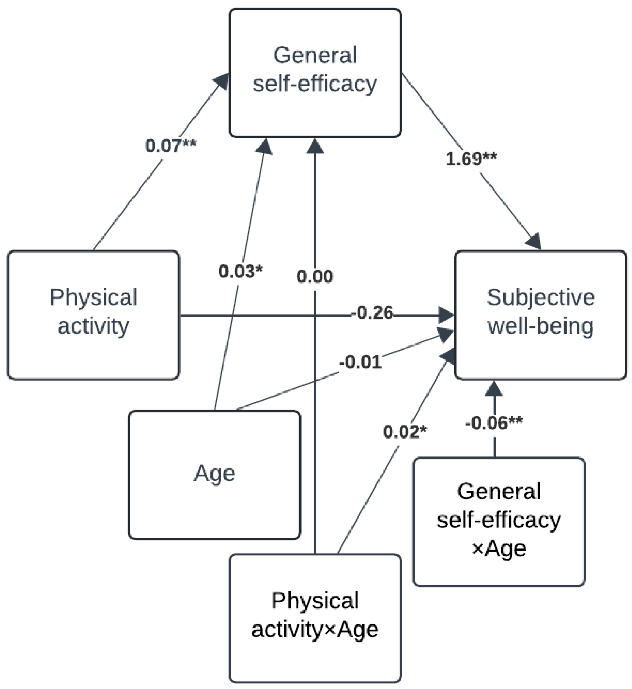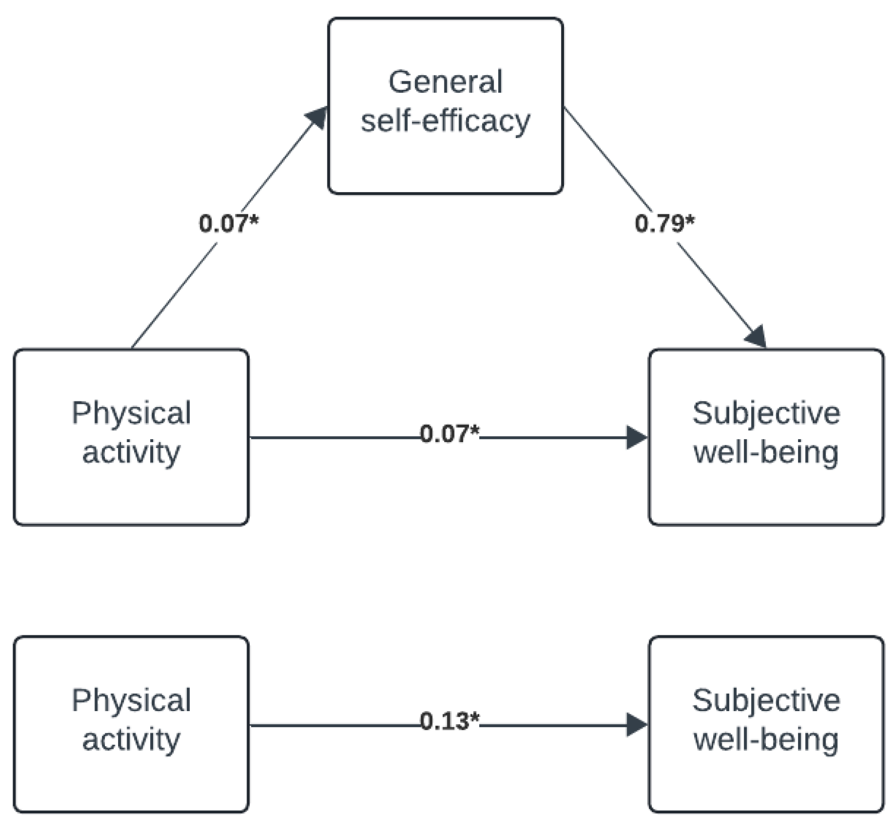 - Guo, S., Fu, H., & Guo, K. (2024). Effects of physical activity on subjective well-being: The mediating role of social support and self-efficacy. Frontiers in Sports and Active Living, 6, 1362816. [Google Scholar] [CrossRef]