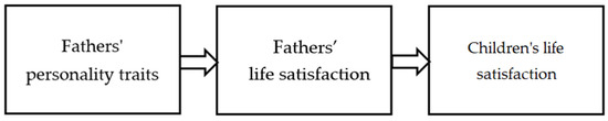 This study specifically sought to explore how fathers’ personality traits and life satisfaction influence adolescents’ life satisfaction. According to the theory of intergenerational transmission, children whose fathers share key personality traits (e.g., extraversion and neuroticism) more commonly inherit their fathers’ life satisfaction, which has long-term effects on their psychological and emotional well-being. Building on previous findings suggesting that life satisfaction is significantly shaped by personality traits (Diener et al., 2003; Fan et al., 2023), we hypothesized that specific personality traits of fathers, such as extraversion and conscientiousness, would positively influence adolescents’ life satisfaction, whereas fathers’ neuroticism would be negatively associated with adolescents’ life satisfaction (Figure 1). Furthermore, we expected that fathers’ life satisfaction would have a stronger predictive effect on adolescents’ life satisfaction than paternal personality traits.
