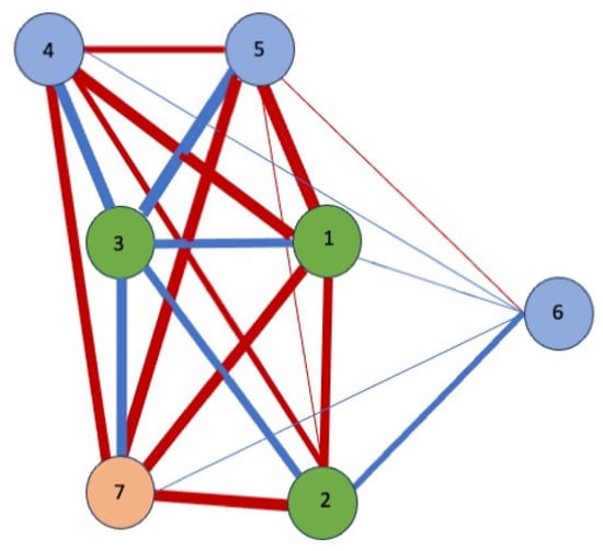- Fruchterman, T. M. J., & Reingold, E. M. (1991). Drawing of graphs by force-directed placement. Software: Practice and Experience, 21(11), 1129–1164. [Google Scholar] [CrossRef]