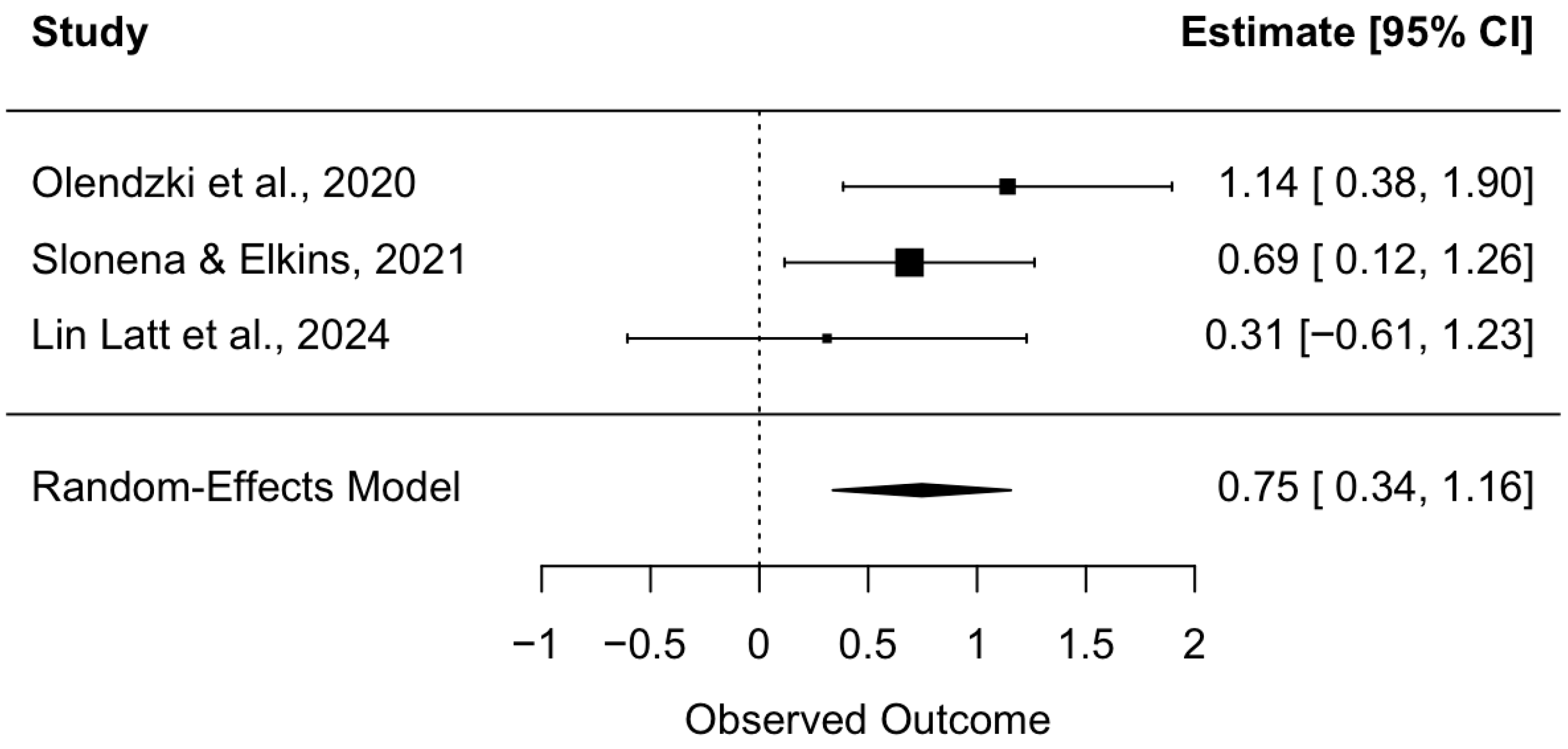 | Acting with Awareness | 0.890 | 0.529, 1.252 | <0.0001 | 1.72 | 0.63 | 0.0% |