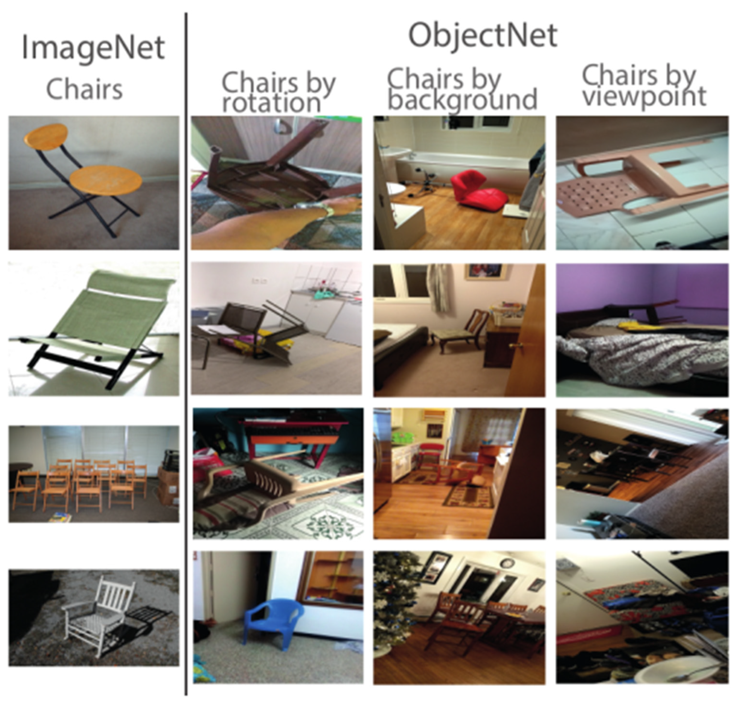 - Barbu, A., Mayo, D., Alverio, J., Luo, W., Wang, C., Gutfreund, D., Tenenbaum, J., & Katz, B. (2019). Objectnet: A large-scale bias-controlled dataset for pushing the limits of object recognition models. In Advances in neural information processing systems 32 (pp. 9453–9463). NIPS Foundation. Available online: https://papers.nips.cc/paper_files/paper/2019/file/97af07a14cacba681feacf3012730892-Paper.pdf (accessed on 10 December 2025).