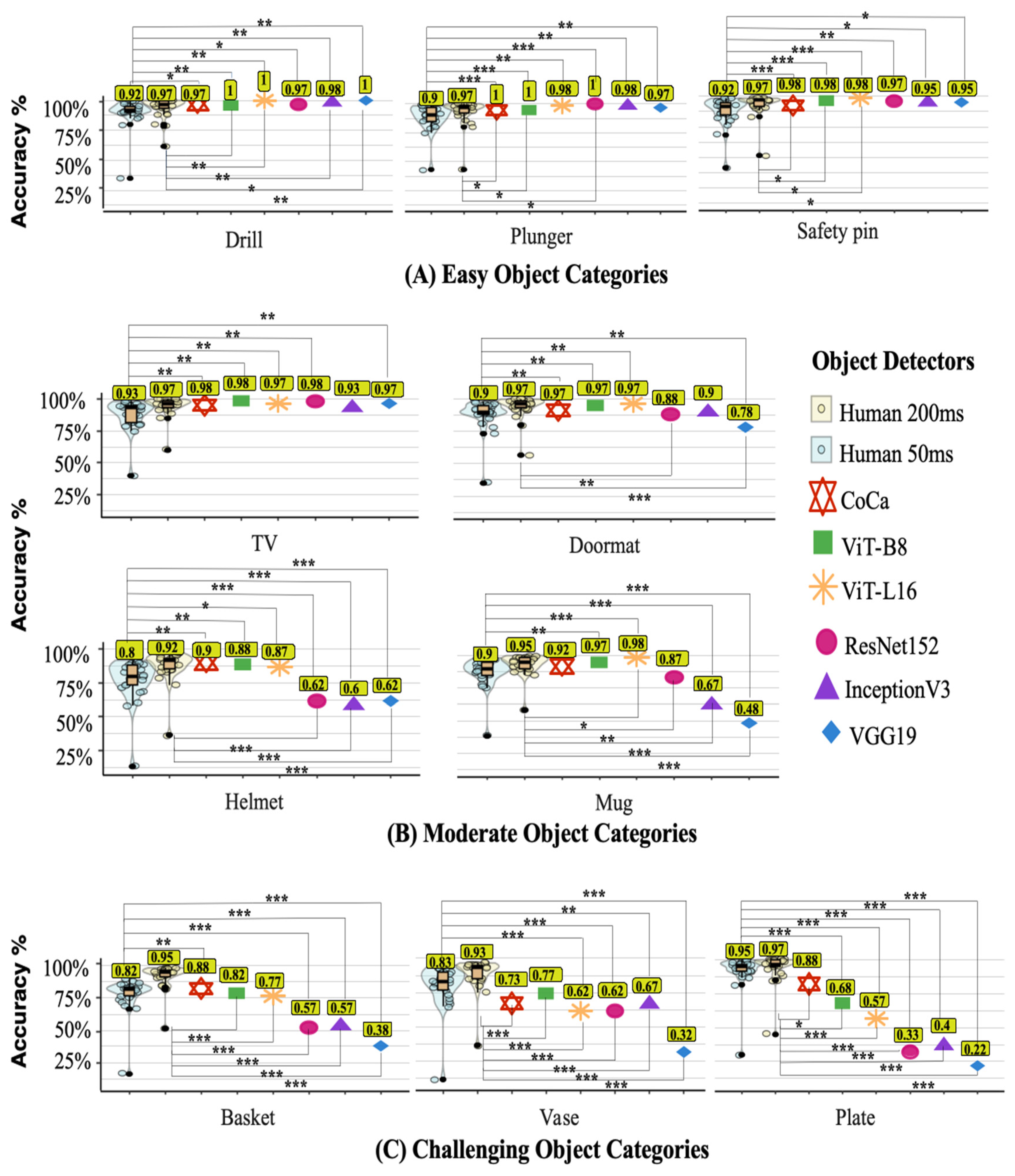 4.3.3. Human–Machine Comparison (Category-Level Accuracy)