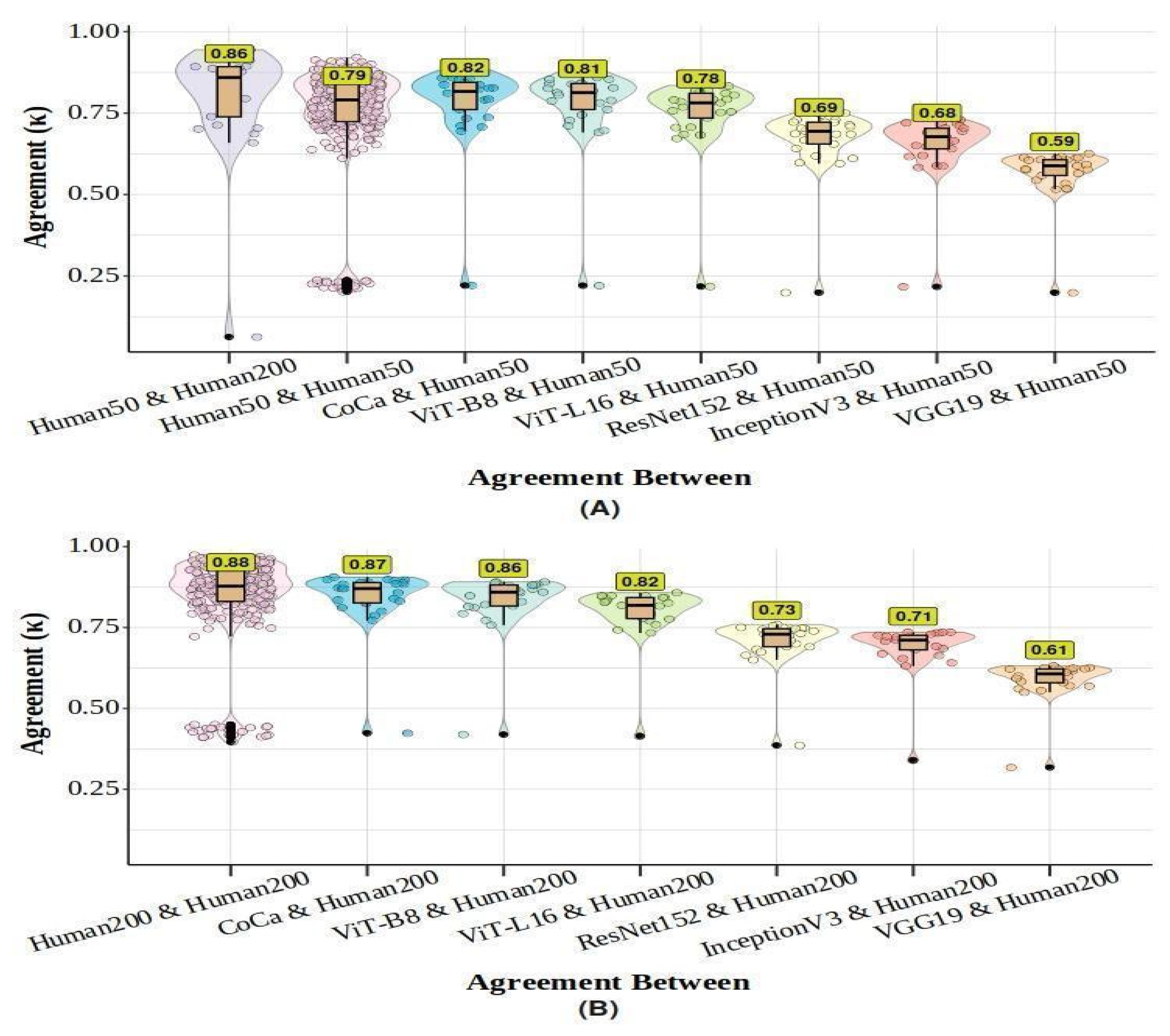 3.3.2. Human–Machine Comparison (Overall Accuracy)