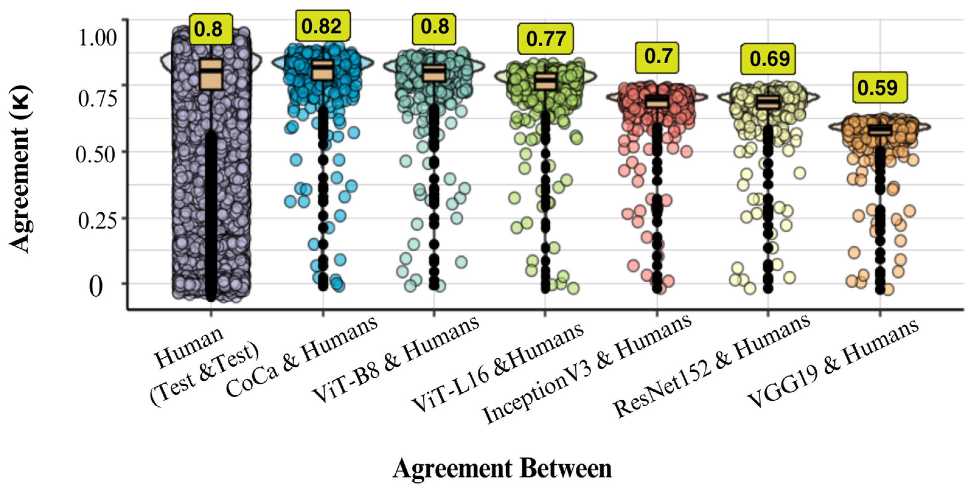 4.3.2. Human–Machine Comparison (Overall Accuracy)