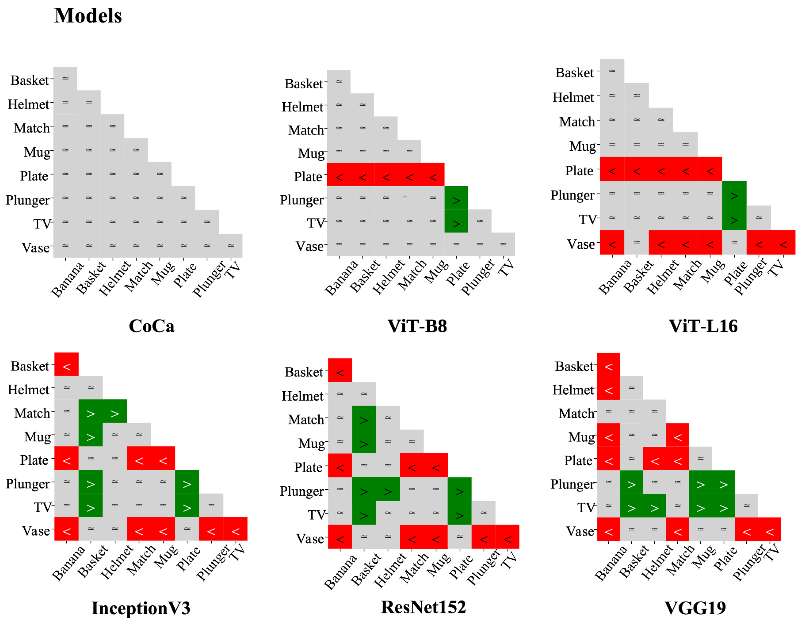 | Condition | CoCa | ViT-B8 | ViT-L16 | ResNet152 | InceptionV3 |