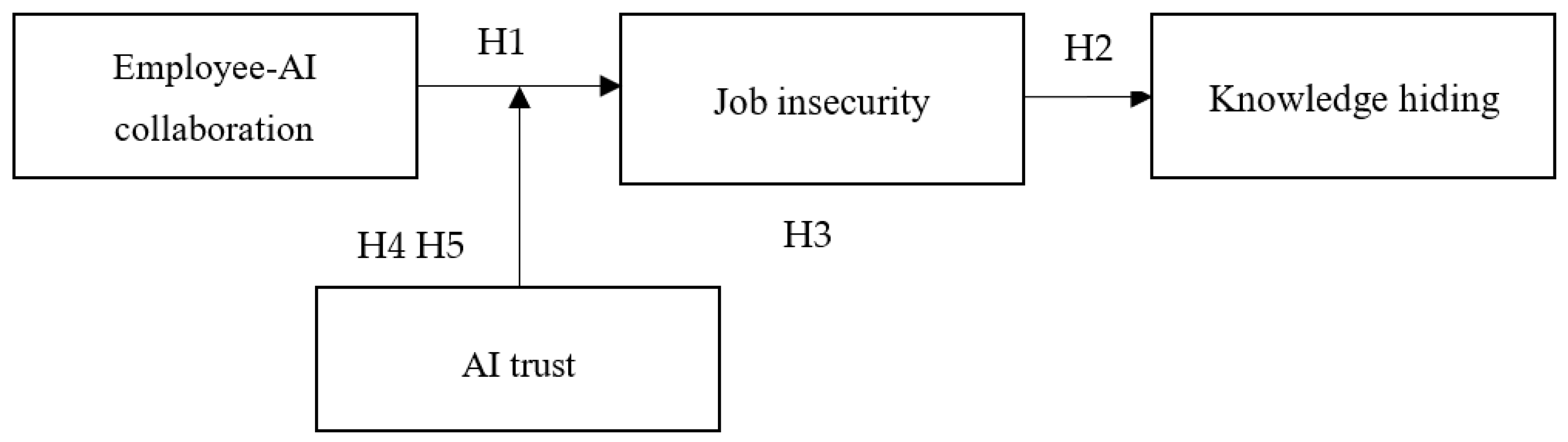 - Kim, B. J., & Kim, M. J. (2024). How artificial intelligence-induced job insecurity shapes knowledge dynamics: The mitigating role of artificial intelligence self-efficacy. Journal of Innovation & Knowledge, 9(4), 100590. [Google Scholar] [CrossRef]