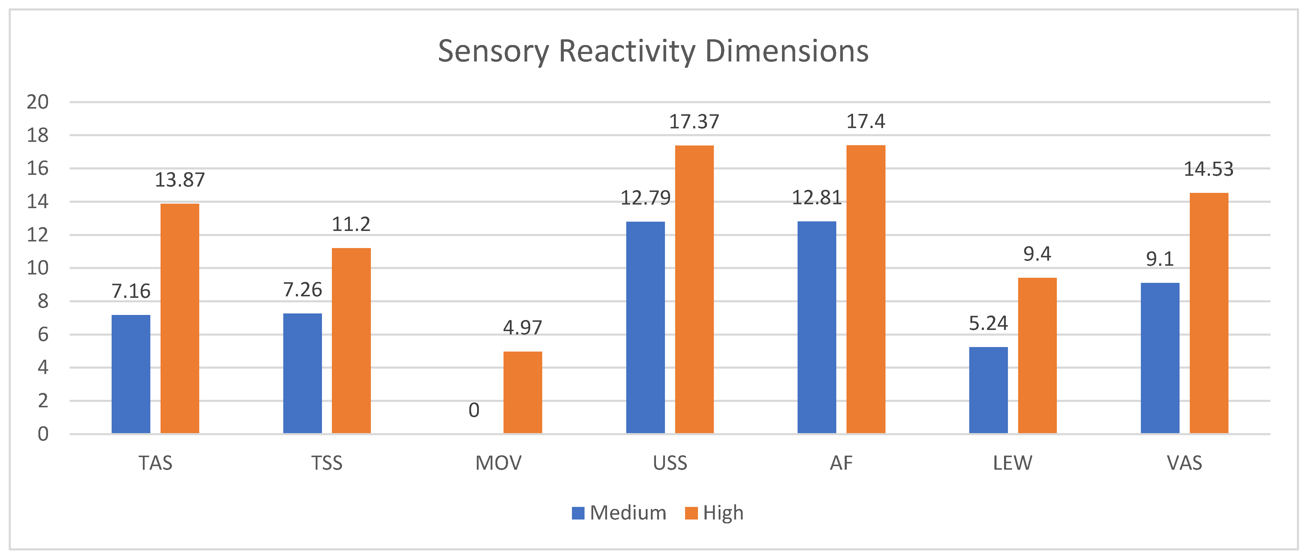 | Low Level of Sensory Reactivity | Medium Level of Sensory Reactivity | High Level of Sensory Reactivity | |
