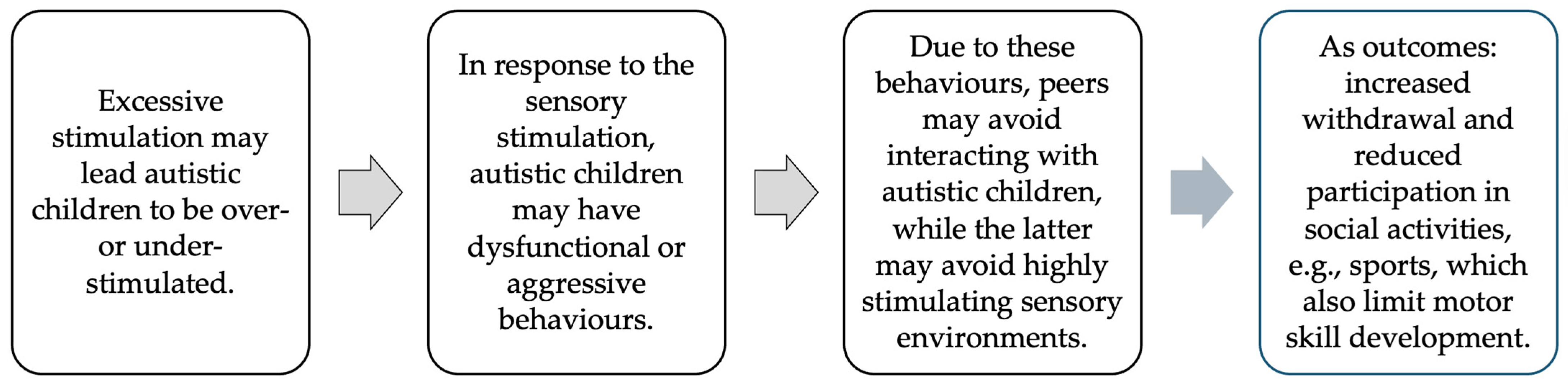 - Wen, L., & Wu, Z. (2025). The impact of sensory integration based sports training on motor and social skill development in children with autism spectrum disorder. Scientific Reports, 15(1), 19974. [Google Scholar] [CrossRef] [PubMed]